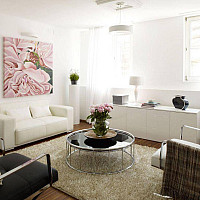 Die moderne 2-Zimmer-Wohnung besticht mit schönem Parkettboden, exklusiven Designer-Möbeln und viel Weißraum. Der offene Wohn- und Essbereich verfügt über eine bequeme Sofaecke mit Couchtisch und…