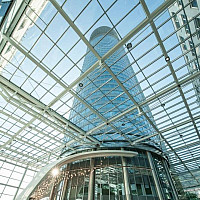 Das moderne Bürogebäude bietet auf acht Geschoßen etwa 18.000 m² Bürofläche.