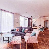 Die vollmöblierten Apartments sind im ruhigen hofseitigen Gebäudetrakt gelegen, 45 m² groß und haben einen Balkon. Sie sind für bis zu fünf Personen (und ein Baby/Kleinkind) geeignet und…