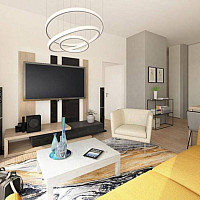 Diese Wohnung befindet sich im 3. Liftstock und verfügt über einen Wohnraum mit Küche, ein Schlafkabinett, ein Badezimmer, ein WC sowie einen Vorraum.