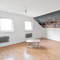Die zwei Zimmerwohnung liegt im DG hat einen großen Wohnraum von 23,12qm ein Schlafzimmer von 13,84qm, extra Küche mit Einzelofen, Vorraum, Bad und extra WC.
