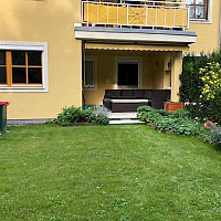 vermietet wird eine Gartenwohnung mit zentralem Vorraum, geräumigen Wohnzimmer (35m²) mit Ausgang auf die Terrasse und zum Garten, 3 Schlafzimmern, Küche komplett…