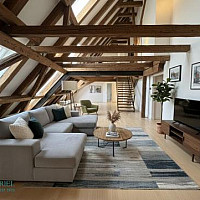 Die Wohnung befindet sich in einem Alt-Wiener Haus aus dem 18. Jahrhundert. Der original Dachstuhl ist in die Architektur eingebunden.