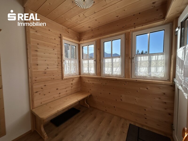 Das Haus Grundlsee mit cirka 117 m² Nutzfläche betritt man durch das so genannte Brückerl, so wird traditionell im Ausseerland das Vorhaus genannt. Von diesem gelangt man einerseits in den gut ausgestatteten Hauswirtschaftsraum und andererseits in die Gästetoilette. Dazwischen wurde die Garderobe eingeplant. Der gesamte Eingangsbereich wurde mit hochwertigen Fliesen ausgelegt. Der Wohn- und Kochbereich zeichnet sich nicht nur durch den Kamin, welcher im Winter und der Übergangszeit für behagliche Wärme sorgt, sondern auch durch die großen Glasfenster und Türen aus. Auch in der Küche bleiben keine Wünsche offen. Ebenfalls im Erdgeschoss befindet sich ein Schlafzimmer, mit Doppelbett und Zugang zu einem eigenen Badezimmer mit Doppelwaschbecken, Dusche und Toilette.