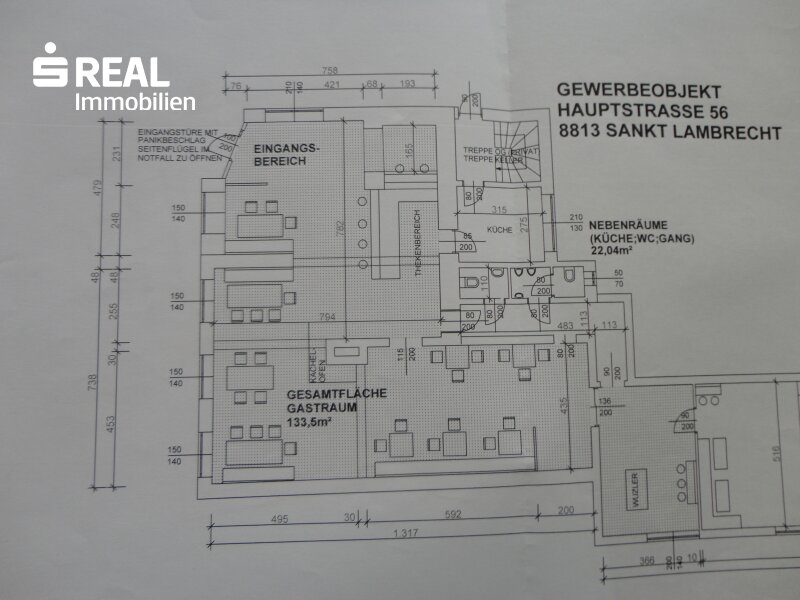 Das Lokal ist nach wie vor möbliert und bietet zum Thekenbereich weitere 90 Sitzplätze und 2 vollkommen intakte computerunterstützte Kegelbahnen. Im Zuge der Umbauarbeiten wurde auch ein Lüftungssystem mit Wärmerückgewinnung installiert. Im Sommer ist zudem die Terrasse im Außenbereich ein Anziehungspunkt. Von hier hat man einen herrlichen Blick auf den eindrucksvollen Stiftsgarten.