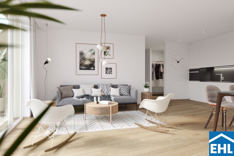 Hier stehen 83 attraktive, bereits bezugsfertige Wohnungen, umgeben von großzügigen Freiflächen, zum Verkauf. Ob mit einem gemütlichen Eigengarten, Balkon oder Terrasse – diese neue Wohnhausanlage bietet für jeden Wunsch die perfekte Außenfläche.