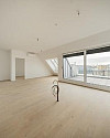 Oberlichten und besonders hohe Schrägfenster bringen viel Tageslicht auch in die Nebenräume. Von den ostseitig ausgerichteten sonnigen Terrassen blickt man in einen trotz zentraler Lage ruhigen Innenhof, die westseitigen Loggien und Terrassen erlauben einen spektakulären Fernblick über die gesamte Stadt bis hin zum Wienerwald und Kahlenberg.