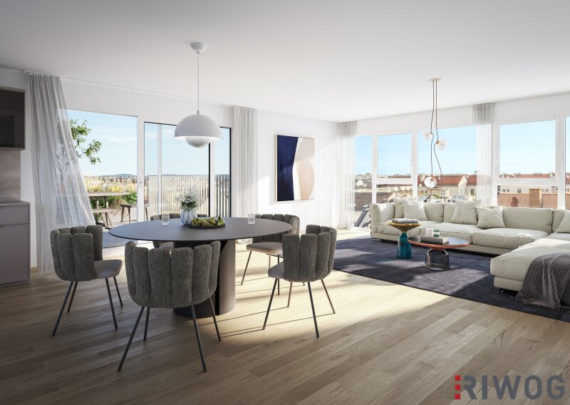 Der Großteil der Wohnungen verfügt über einen Garten, einen Balkon oder eine Terrasse – mit Blick in den grünen Innenhof oder auf das urbane Treiben der Stadt.Bodentiefe Fensterverbinden den Innenraum mit dem Freibereich und ermöglichen freie Sicht nach draußen. Lichtdurchflutete Wohnräume sorgen für eine angenehme Atmosphäre und ein gesundes Raumklima. Allen Bewohnern steht ein hauseigener Freizeitraum mit Küche zur Verfügung.