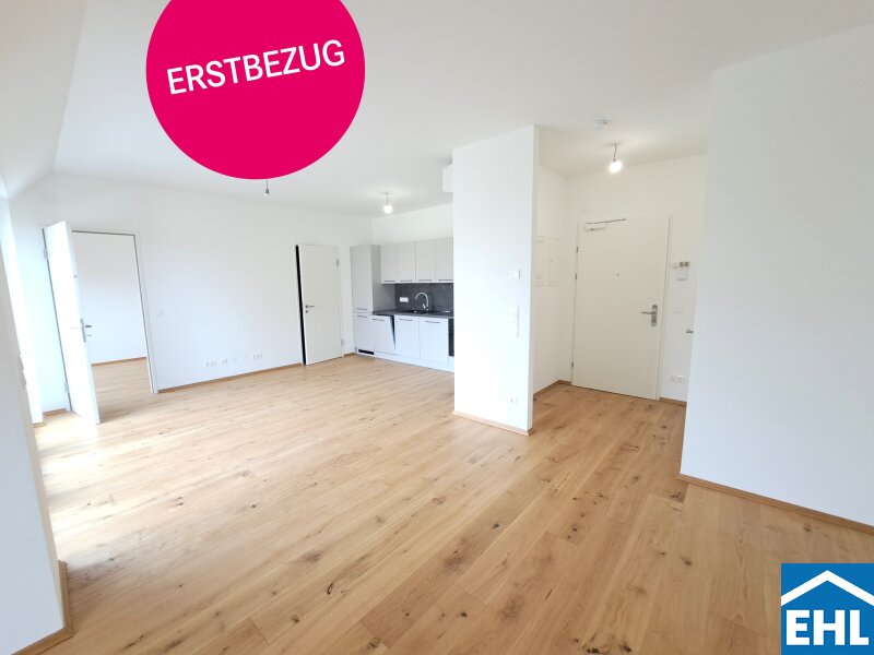 Hier stehen 83 attraktive, bereits bezugsfertige Wohnungen, umgeben von großzügigen Freiflächen, zum Verkauf. Ob mit einem gemütlichen Eigengarten, Balkon oder Terrasse – diese neue Wohnhausanlage bietet für jeden Wunsch die perfekte Außenfläche.