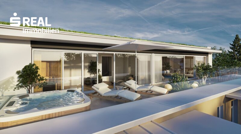 Diese geräumige Wohnung besticht durch komfortables Wohnen und vielseitige Raumnutzung. Ein Podest von 1,78 m² führt über eine elegante Treppe in den einladenden Vorraum mit 11,33 m². Das separate WC mit 1,82 m² und das großzügige Badezimmer mit 16,23 m² sind funktional und stilvoll gestaltet. Der offene Koch- und Essbereich mit beeindruckenden 34,48 m² bietet ausreichend Platz für kulinarische Erlebnisse und gesellige Abende. Eine angrenzende Speisekammer mit 3,52 m² sorgt für zusätzliche Lagerfläche. Der großzügige Wohnbereich mit 39,01 m² schafft eine behagliche Atmosphäre. Zwei Zimmer mit 22,56 m² und 17,11 m² bieten flexible Gestaltungsmöglichkeiten, und ein Abstellraum mit 1,52 m² sorgt für zusätzlichen Stauraum. Zwei Balkone mit 4,49 m² und 4,35 m² erweitern den Wohnraum ins Freie und laden zum Verweilen ein. Eine weitere Treppe führt ins Dachgeschoss, wo Sie ein zusätzlicher Wohnbereich von 26,37 m² erwartet. Der großzügige Wellnessbereich mit 20,40 m² bietet perfekte Entspannungsoasen. Die weitläufige Terrasse mit 28,56 m² und das Gründach mit 11,44 m² bieten zusätzliche Außenbereiche, die ideal zum Entspannen und Genießen sind. Der gesamte Wohnraum im Dachgeschoss schafft eine einladende Atmosphäre für gesellige Zusammenkünfte und Erholung.