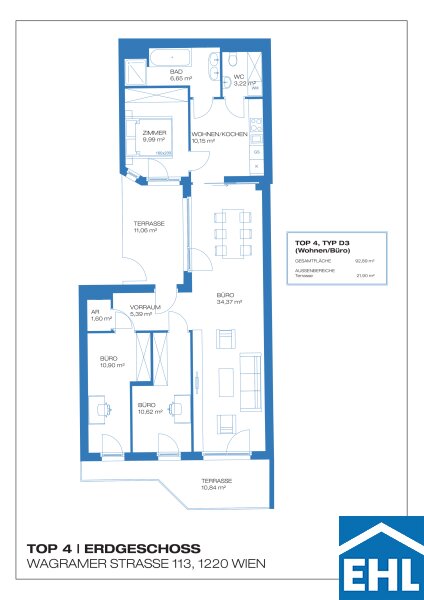 Top 4 befindet sich im Erdgeschoss, ist rein hofseitig orientiert und eignet sich perfekt als Büro in Kombination mit Wohnen. Es handelt sich um ein schlüsselfertiges Top inkl. Küchenanschlüsse.