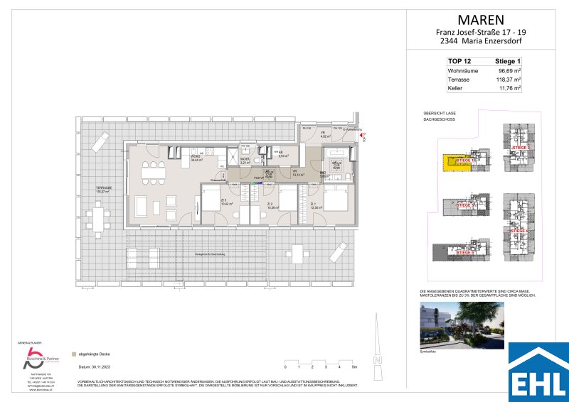 Die Wohnungen bestechen durch durchdachte Grundrisse, großzügige Fensterfronten und moderne Ausstattung. Ob eine gemütliche Garçonnière mit ca. 32m² oder eine weitläufige 5-Zimmer-Wohnung mit bis zu ca. 119m² – jede Einheit bietet Ihnen ein Zuhause zum Wohlfühlen. Die nach Süden oder Südosten ausgerichteten Wohneinheiten verfügen über großzügige Balkone und Terrassen, die Erdgeschoßwohnungen bieten zudem private Gärten. Genießen Sie den Luxus, auf Pergolen Weinreben ranken zu lassen und die Natur hautnah zu erleben.