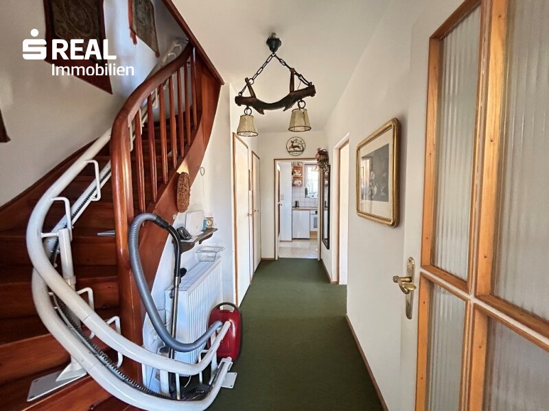 Die Liegenschaft wurde im Jahr 1963 erbaut und im Jahr 2006 saniert. Insgesamt stehen zwei Etagen zur Verfügung. Im Erdgeschoss sind traditionell die Küche, Wohnzimmer, Esszimmer, Badezimmer, Toilette und Abstellraum vorhanden, im Obergeschoss stehen drei Schlafräume zur Verfügung. Ein gepflegter Außenbereich lädt in der wärmeren Jahreszeit ein, auf dem geschützten Balkon mit großer Markise, und den drei Terrassen im Osten, Süden und Westen, das eindrucksvolle Panorama zu genießen. Rund um die Liegenschaft beeindruckt Sie ein wundervoller Bergblick. Trotz der zentralen Lage, liegt das Anwesen sehr ruhig und verkehrsgeschützt, das es nur über eine Privatstraße (50% Miteigentum) erreichbar ist. Eine kleine Garage ist der Liegenschaft zugehörig.