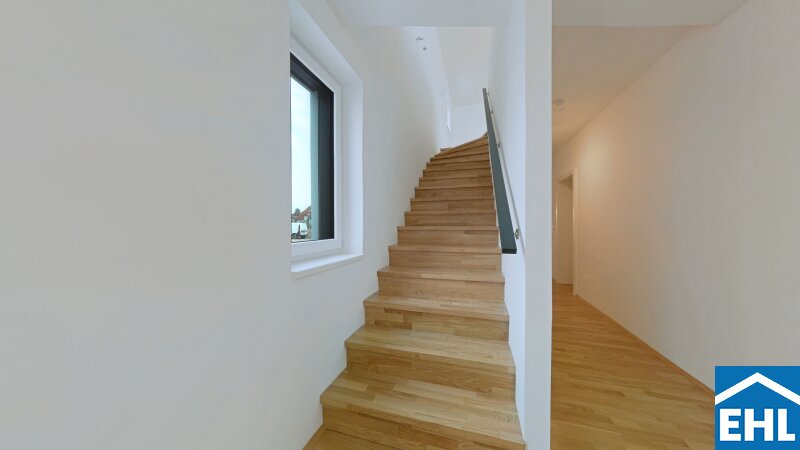 Die ruhige, grüne Umgebung punktet mit Naherholungsgebieten, Parks und guter öffentlicher Anbindung nach Wien. Schulen, Kindergärten und Einkaufsmöglichkeiten sind schnell erreichbar – ideal für den Alltag mit Kindern.