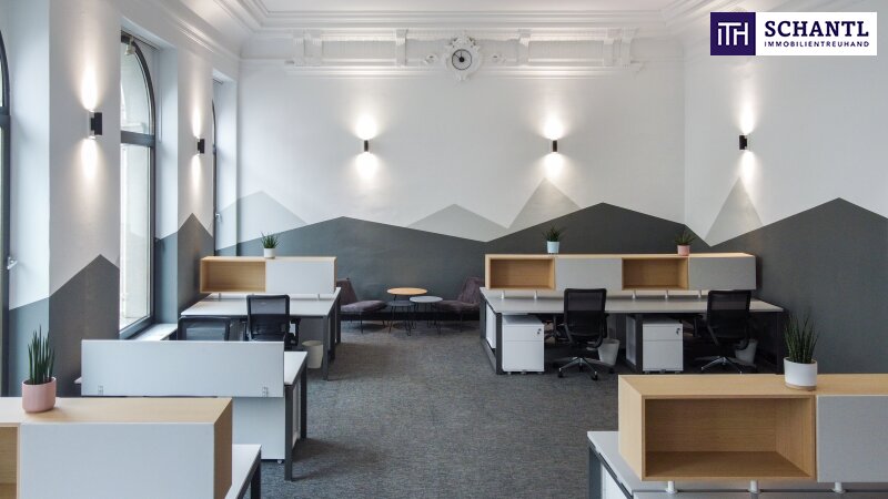 Die Bürofläche umfasst eine großzügige Gesamtfläche von rund 165,7 m² und ist modern und flexibel gestaltet. Hier wird ein extra Eingang errichtet, wenn man das Büro mieten möchte. Bei Bedarf kann möbliert angemietet werden.