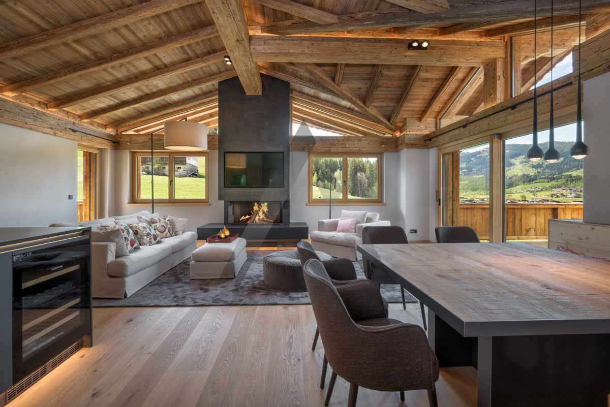 Im traditionellen Tiroler Landhausstil jedoch mit modernster und hochwertigster Ausstattung entstand diese Chalet-Einheit in einem traumhaften Ensemble mit sechs Einheiten in ruhiger und leicht erhöhter Ausblicklage von Kirchberg in Tirol. Diese Einheit bietet einen besonders schönen Blick auf Kirchberg, in das Brixental und auf den Gaisberg.