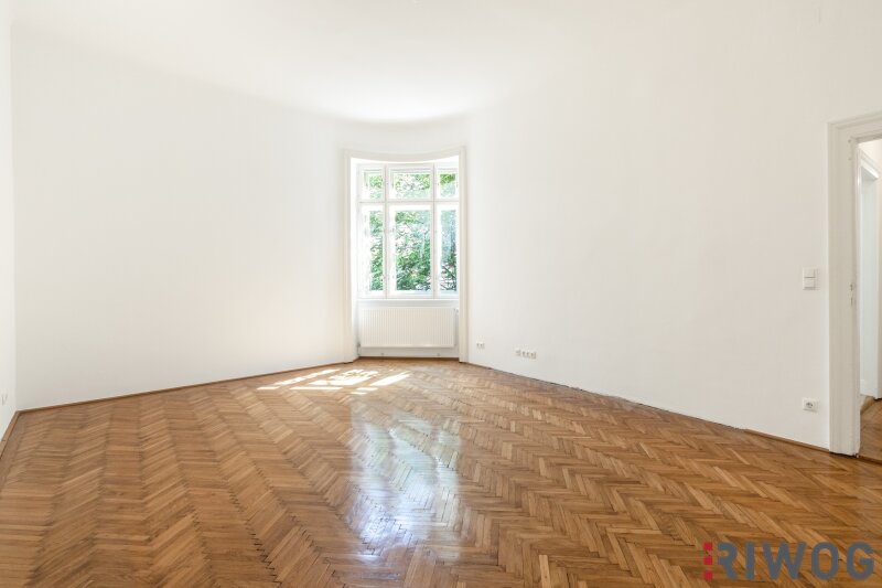 In ruhiger Innenhoflage verbirgt sich diese stilvolle, ca. 113 m² große Altbauwohnung mit beeindruckenden Raumhöhen von bis zu 3,5 Metern. Gelegen ist die Wohnung in der 3. Etage (mit Lift) einer imposanten Jahrhundertwendeliegenschaft. Klassische Elemente wie das Fischgrätparkett, die eleganten Flügeltüren und die originalen Holzkastenfenster verleihen den Räumen einen besonderen Charme. Alle drei Zimmer sind zentral begehbar, ergänzt durch eine separate Küche mit Küchenzeile und das ehemalige „Dienerzimmer“, nun ideal z.B. als Gäste- oder Arbeitszimmer nutzbar. Das Badezimmer mit Fenster und ein separates WC sorgen für zusätzlichen Komfort. Die zuletzt vermietete Stilatlbauwohnung befindet sich in einem optisch gepflegten Zustand, bietet Altbauverliebten das perfekte Zuhause und zudem Potenzial für individuelle Gestaltung (siehe z.B. unverbindlicher Planvorschlag).