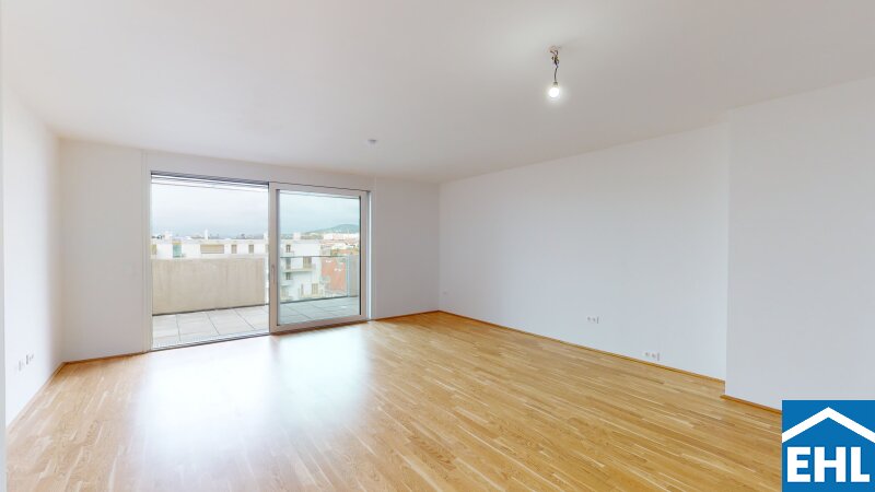 Weitblick & Wohnkomfort – Loggienwohnung mit Ost-West-AusrichtungIn der 9. Etage von Stiege 2 befindet sich die großzügige 3-Zimmer-Eigentumswohnung TOP 78 mit ca. 115 m² Wohnnutzfläche, inklusive zwei Loggien mit gesamt ca. 21 m² auf beiden Seiten der Wohnung. Der durchgesteckte Grundriss ermöglicht Morgensonne und Abendlicht, während die offen gestaltete Wohnküche mit fast 40 m² das kommunikative Zentrum der Wohnung bildet.