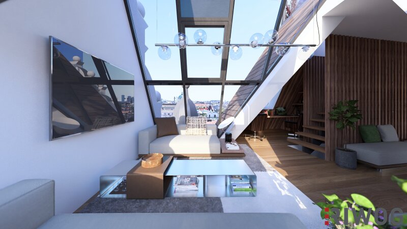 Die gesamte Dachgeschossebene steht zum Verkauf. Ein Liftzugang direkt in die Wohnung unterstreicht den exklusiven und privaten Charakter. Angeboten werden eine sofort beziehbare Wohnung (ca. 105 m²) sowie ein Rohdachboden mit Architektenstudie welches die bestehende Dachgeschoßwohnung zu einem Penthouse-Juwel mit rund 215 m² Wohnfläche verwandelt. Geplant sind eine Terrasse auf Wohnebene mit ca. 8,86 m² sowie eine großzügige Dachterrasse mit ca. 31,75 m² – ein privater Rückzugsort mit unvergleichlichen 360°-Panoramablick über Wien.