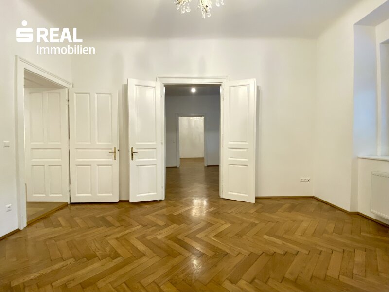 Stilvoller Altbauflair mit hohen Decken und Fischgrätparkett