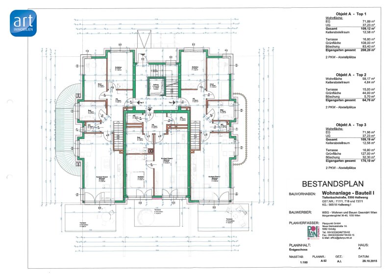 TOP 2: Diese gepflegte Gartenwohnung aus dem Baujahr 2015/2016 befindet sich in einem familienfreundlichen Wohnhaus mit nur 8 Einheiten, hat circa 58m2 Wohnfläche auf 2 Zimmer aufgeteilt, sowie circa 50m2 Garten und 15m2 Terrasse, im letzten Gebäude einer Siedlungssackgasse, angrenzend an Grünland und doch in direkter Nähe zu Hallwang und Elixhausen!! Das Objekt befindet sich in ruhiger Lage im Ortsteil Tiefenbach der Gemeinde Hallwang und bietet eine hervorragende Anbindung an die Stadt Salzburg. Die S-Bahn-Station ist in nur fünf Gehminuten erreichbar und ermöglicht eine schnelle Verbindung ins Stadtzentrum. Auch mit dem Auto ist die Salzburger Innenstadt in nur ca. 15 Minuten bequem erreichbar. Die architektonische Planung des Innenbereiches und dessen Umsetzung ist mehr als nur gelungen. Logische und praktische Abläufe in der Raumaufteilung und Raumreihenfolge.Die Ausstattung der Wohnung in Bezug auf verwendeter Materialien bzw. Geräten ist generell hochwertig und geschmackvoll gewählt. Auf der großen südseitigen Terrasse kann bis in die späten Abendstunden die Sonne genossen werden.Die Heizung läuft zentral mittels Fernwärme.Die Wohneinheit bietet:- Einen einladenden Eingangsbereich mit genügend Platz für eine Garderobe- Einen großzügigen, lichtdurchfluteten Wohn- und Essbereich mit direktem Zugang zur sonnigen Terrasse (ca. 15 m²) und dem südlich ausgerichteten Garten (ca. 49,7 m²)- Eine moderne Einbauküche der Marke DANA mit hochwertigen BOSCH-Geräten- Ein Schlafzimmer mit angrenzendem Umkleidezimmer, das bei Bedarf leicht zurückgebaut werden kann- Ein großzügiges Badezimmer mit Badewanne und Waschmaschinenanschluss- Eine separate Toilette mit Waschbecken- Einen praktischen AbstellraumAlle Fenster sind mit Jalousien und Insektenschutz ausgestattet. Im Untergeschoss gehört ein ca. 4,64 m² großes Kellerabteil zur Wohnung. Zur gemeinschaftlichen Nutzung stehen außerdem ein Fahrradabstellbereich, sowie ein Gemeinschaftskeller zur Verfügung. Zwei Parkplätze stehen der Wohnung zur Nutzung im Rahmen einer Benützungsvereinbarung zur Verfügung.