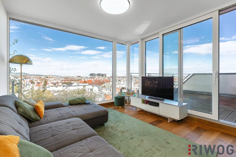 Zum Verkauf gelangt eine durchdachte 4-Zimmer-Dachgeschosswohnung mit zwei großen Außenflächen und einmaligem Ausblick über die Dächer Wiens bis zum Kahlen- und Leopoldsberg.