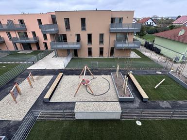 Der liebevoll gestaltete Gemeinschaftsbereich mit Kinderspielplatz soll für zusätzliche Wohnqualität sorgen. Neben der bequemen Parkmöglichkeit auf den vorgesehenen hauseigenen Abstellflächen werden zusätzlich großzügige Fahrradabstellräume geboten.