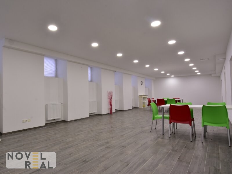 Die insgesamt 127 m² befinden sich im Souterrain und bestehen aus einem Großraum (75 m² und 20 m² Nebenraum) mit Tageslicht, einer Küche, einem Abstellraum sowie Dusche und WC.