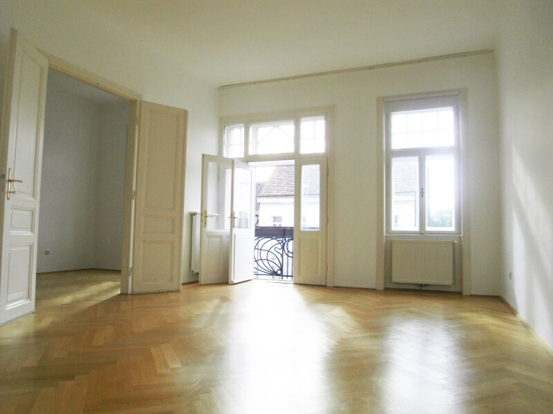 Die Wohnung im dritten Stock (ohne Lift) bietet auf ca. 71m² eine perfekte Raumaufteilung mit sonnigem Wohnzimmer und Kabinett straßenseitig, zweitem Schlafzimmer hofseitig, zwei kleinen Balkonen, einer kompletten Küche, großem Vorraum, Wannenbad und WC. Wohnzimmer, Kabinett und der kleine Balkon sind südseitig ausgerichtet und extrem hell, der Fernblick ist einfach atemberaubend.