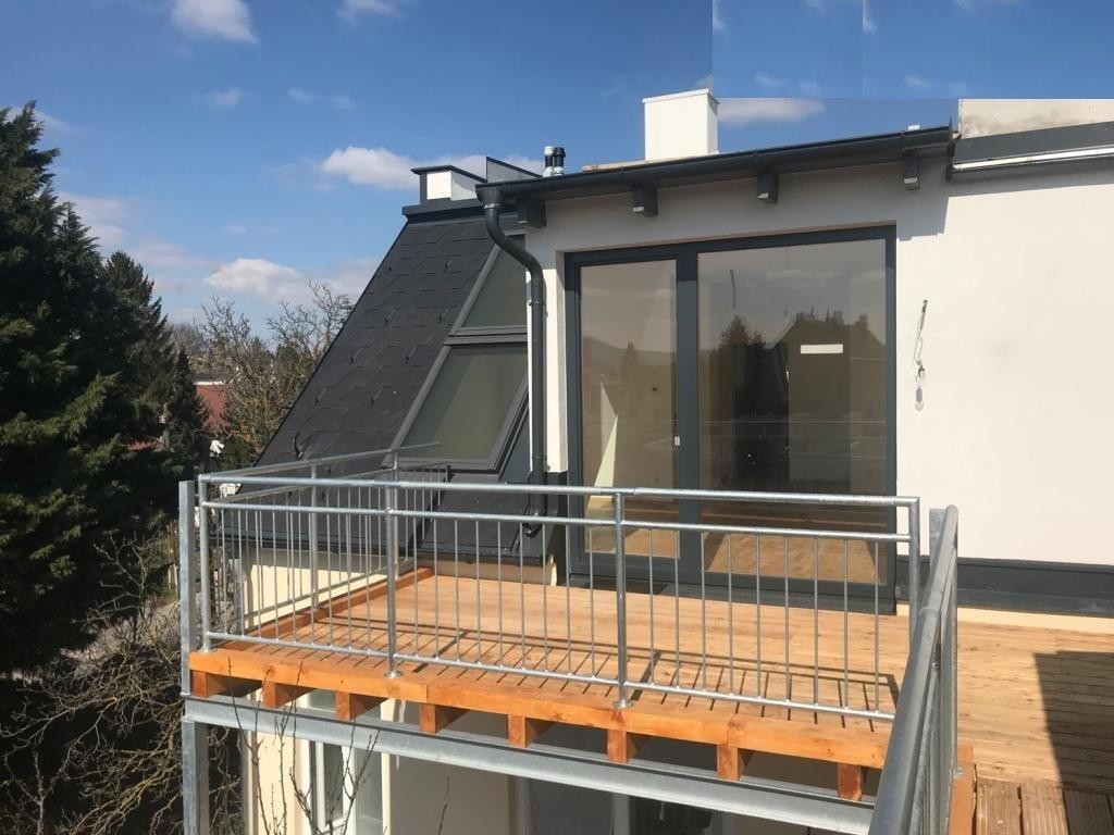 In einem frischrenovierten Jugendstilhaus befindet sich diese Wohnung im neu errichteten Dachgeschoß. Das sonnige Wohnesszimmer öffnet sich auf einen großen Balkon. Man blickt hier in die Gärten und hat hier einen schönen Platz sein eigenes Balkonien anzulegen, sobald die ersten Frühlingsstrahlen da sind.
