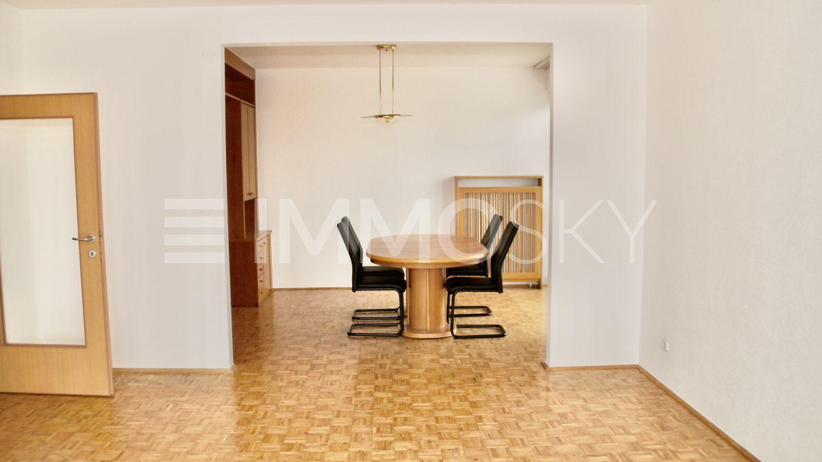 Von dort kommt man in das großzügig geschnittene nach Süden ausgerichtete Wohn /Esszimmer mit direktem Zugang auf die 10 m² Loggia, das zugleich der zentrale Mittelpunkt dieser Immobilie ist.