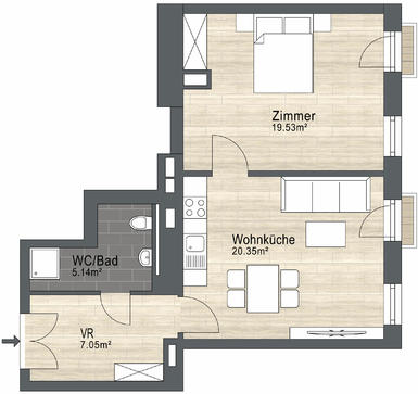 7 Bestands-Wohnungen in Größen von 30 m² bis 115 m² mit 1 bis 3 Zimmern, teilweise mit lauschigem Balkon in den Innenhof werden dem heutigen Standard entsprechend hergestellt; außerdem entstehen durch den Ausbau des Dachgeschoßes weitere 5 neue Wohnungen mit 2, 3 oder 4 Zimmern von 50 m² bis 140 m² wovon 3 Maisonett-Wohnungen errichtet werden.