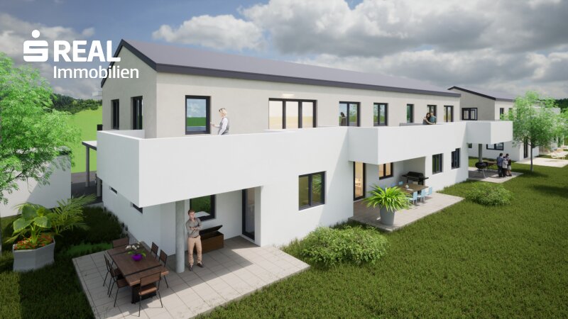 Die südöstlich ausgerichteten Wohnungen bieten entweder eine großzügige Terrasse mit Eigengarten im Erdgeschoß oder einen sonnigen Balkon im Obergeschoß. Alle Einheiten verfügen über durchdachte Grundrisse und hochwertige Ausstattungsmerkmale. Zu jeder Wohnung gehört ein überdachter Autoabstellplatz sowie ein ebenerdiger Abstellraum. Darüber hinaus steht pro Wohneinheit ein eigener Besucherparkplatz zur Verfügung. Die Geschoße des Hauses werden über eine überdachte Außenstiege mit Laubengang erschlossen – funktional und architektonisch ansprechend gelöst.