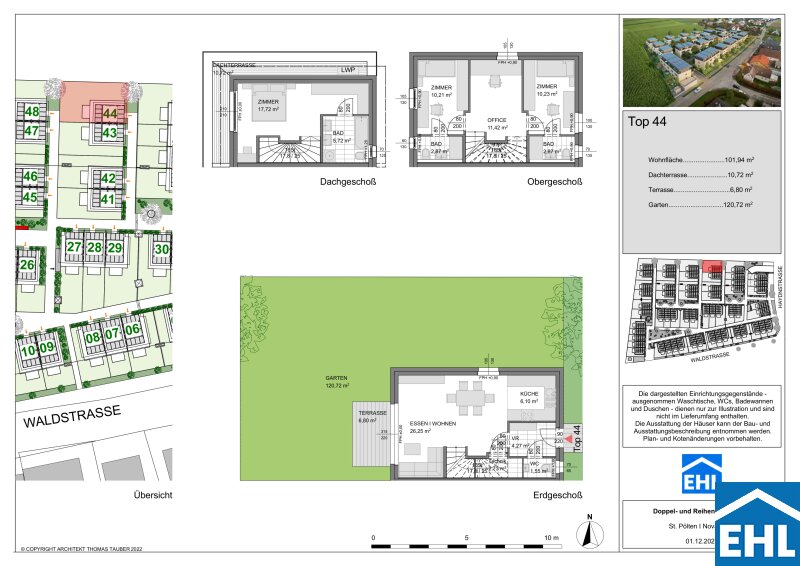 Die Häuser verfügen über drei Etagen, wobei in den meisten Einheiten ein zusätzliches Kellergeschoß ausgeführt wird. Die Wohnflächen variieren zwischen 99 und 109 m² und bieten mit 4 Zimmern ausreichend Platz und Komfort für eine Familie. Großzügige Freiflächen in Form von Gärten, Terrassen und Dachterrassen laden zum Entspannen und Genießen ein. Hier können Sie Ihren grünen Daumen entfalten und entspannte, gesellige Stunden mit Freunden und Familie erleben. Für jede Wohneinheit sind zudem 2 Tiefgaragenplätze vorgesehen, die bequem erreichbar und schon im Kaufpreis inbegriffen sind.