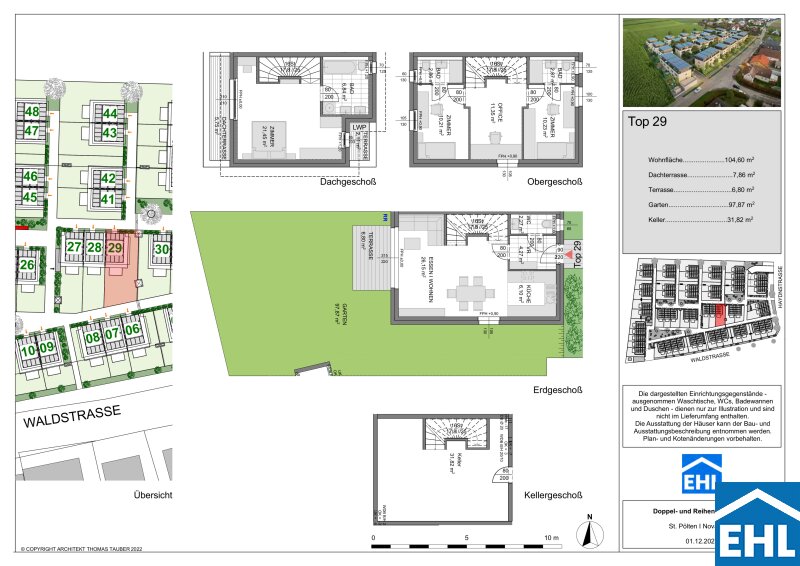 Die Häuser verfügen über drei Etagen, wobei in den meisten Einheiten ein zusätzliches Kellergeschoß ausgeführt wird. Die Wohnflächen variieren zwischen 99 und 109 m² und bieten mit 4 Zimmern ausreichend Platz und Komfort für eine Familie. Großzügige Freiflächen in Form von Gärten, Terrassen und Dachterrassen laden zum Entspannen und Genießen ein. Hier können Sie Ihren grünen Daumen entfalten und entspannte, gesellige Stunden mit Freunden und Familie erleben. Für jede Wohneinheit sind zudem 2 Tiefgaragenplätze vorgesehen, die bequem erreichbar und schon im Kaufpreis inbegriffen sind.