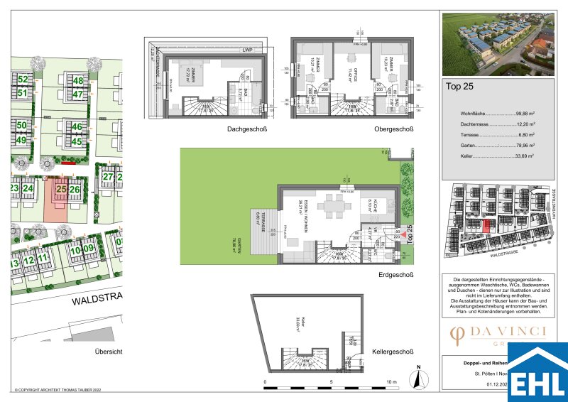 Die Häuser verfügen über drei Etagen, wobei in den meisten Einheiten ein zusätzliches Kellergeschoß ausgeführt wird. Die Wohnflächen variieren zwischen 99 und 109 m² und bieten mit 4 Zimmern ausreichend Platz und Komfort für eine Familie. Großzügige Freiflächen in Form von Gärten, Terrassen und Dachterrassen laden zum Entspannen und Genießen ein. Hier können Sie Ihren grünen Daumen entfalten und entspannte, gesellige Stunden mit Freunden und Familie erleben. Für jede Wohneinheit sind zudem 2 Tiefgaragenplätze vorgesehen, die bequem erreichbar und schon im Kaufpreis inbegriffen sind.