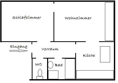 Wohnung im 1.Stock - südl. Ausrichtung Gang, Küche mit Essraum, Bad mit Dusche und Wanne, WC, Wohnzimmer, Schlafzimmer Perfekte Wohnung für Zugpendler monatliche Miete: 560 € (ohne Heizung/Strom) Mietdauer auf 4 Jahre befristet Verfügbar ab: Juni 2018
