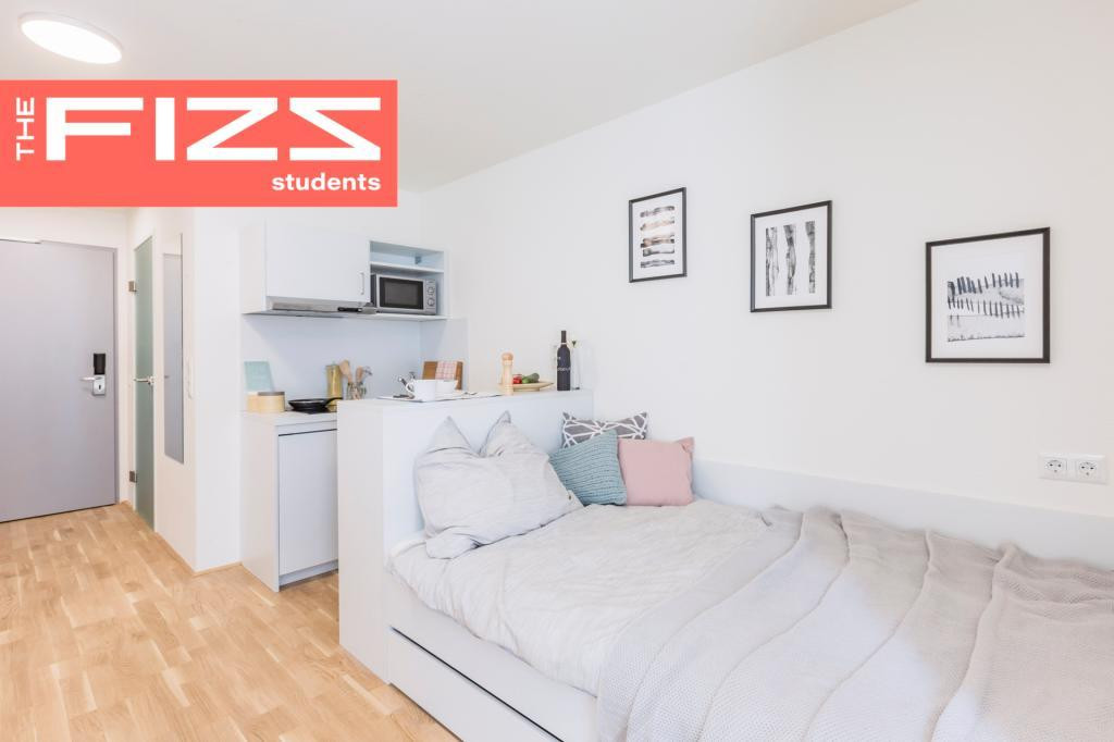 Leben, lernen, lachen an einem Ort: In den THE FIZZ Apartmenthäusern erwartet dich ein Komplettpaket, das deine Studentenzeit unvergesslich macht. Das THE FIZZ Wien bietet dir die Qual der Wahl zwischen 632 vollmöblierte Studentenapartments mit eigener Pantry-Küche und Duschbad. Du kannst nicht nur die Größe deines Apartments frei wählen, sondern auch zwischen Single- oder Double Apartments. Außerdem mietest du im THE FIZZ Wien mehr als nur ein Apartment, sondern ein ganzes Haus mit verschiedenen Gemeinschaftsflächen: mehrere Küchen, großzügige Lounges, Lernräume, Musikzimmer, Kinobereich und Vieles mehr. Das Highlight des Hauses: die große Dachterrasse, die mit 360-Grad-Blick über Wien und eigenem Grill zu jeder Jahreszeit zum Entspannen und gemeinsamen Feiern einlädt. EINFACH EINZIEHEN UND WOHLFÜHLEN Ein House Manager wird sich vom Einzug an um all deine Anliegen kümmern und bspw. deine Pakete entgegennehmen oder kostenlos Haushaltsgeräte zur Verfügung stellen. Für zusätzliche Sicherheit sorgen ein zentraler Haupteingang, zu dem nur Bewohner Zutritt haben, sowie die Videoüberwachung sämtlicher Ein- und Ausgänge. DEIN APARTMENT Dein 1-Zimmer-Studioapartment bietet dir einen Wohnraum mit: •Bett inkl. Matratze (1,20 m breit) •Schreibtisch mit Stuhl •Tisch mit Hocker •Garderobe mit Spiegel •extra viel Stauraum •elektrischen Außenjalousien Die Pantry-Küche ist ausgestattet mit: •zwei Kochfeldern •Kombi-Mikrowelle •Kühlschrank mit Gefrierfach einer Spüle und Theke. Das moderne Duschbad bietet neben WC, Waschtisch mit Spiegel weitere Stauflächen. DEINE THE FIZZ FAMILY Dein größter Vorteil im THE FIZZ ist jedoch: COMMUNITY wird bei uns großgeschrieben! In unseren Studentenwohnhäusern bist du nicht nur ein anonymer Bewohner, sondern Teil der großen, internationalen THE FIZZ Family. Dich erwarten laufende Events in den Gemeinschaftsräumen oder auf der großzügigen Dachterrasse mit Blick über Wien. ZUSÄTZLICHE SERVICES Sämtliche Services sind in deiner All-In-Miete inkludiert: •House Manager bzw. Concierge Service •Verleih von Haushaltsgeräten •Wäsche- und Trockenräume •zahlreiche Events •Highspeed-Internet •Paketannahmeservice •Gemeinschaftsräume zum Arbeiten, Entspannen oder Feiern •zentrales Zugangs- bzw. Sicherheitssystem (auch per Handy-App) •sämtliche Nebenkosten (Strom, Heizung) Für weitere Informationen zum Objekt und Besichtigungen besuche uns unter https://www.the-fizz.com/wien oder kontaktiere uns gerne unter sales.vienna@the-fizz.com.