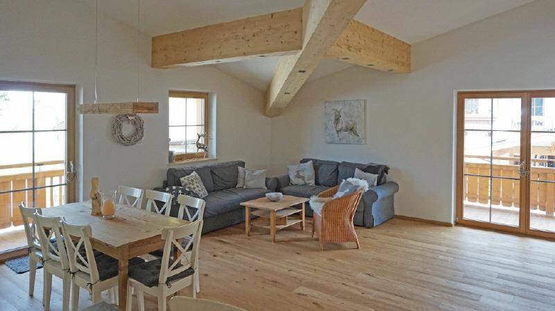 Diese hochwertig ausgestattete Dachgeschosswohnung lässt keine Wünsche offen. Auf 100 m² Wohnfläche verteilen sich zwei Schlafzimmer mit zwei verbundenen Bädern, ein Gäste-WC, eine Garderobe, ein Abstellraum und als Mittelpunkt ein großer Wohnraum mit integrierter Küche und Essbereich. Vom Wohnzimmer und einem Schlafzimmer aus gelangen Sie auf die beiden Balkone. In der Mitte des Wohnraumes befindet sich ein Kaminanschluss, wo jederzeit ein Kachelofen eingebaut werden kann. Die Ausstattung erfolgte mittels exklusiven Materialien, wie zum Beispiel Parkettböden aus Eichenholz, Fenster- und Türenelemente aus Lärchenholz, warme Fliesenböden, der Sichtdachstuhl oder die elegante Einbauküche mit Boraherd. Durch den Personenlift ist die Wohnung bequem und leicht erreichbar. Zur Wohnung gehört ein geräumiger Kellerraum sowie zwei Tiefgaragenstellplätze. Die Wohnung befindet sich in einer kleineren Wohnanlage im Ort Aschau, welcher sich neben den Gemeinden Kirchberg in Tirol und Kitzbühel befindet. Das heißt ruhiges Wohnen inmitten der Kitzbüheler Bergwelt samt höchster Lebensqualität. Direkt vor der Haustüre endet die Skiabfahrt vom Schwarzkogel. Ebenfalls in unmittelbarer Nähe befindet sich eine Bushaltestelle. Der Ortsteil Aschau ist noch ursprünglich und naturbelassen, einige Gasthäuser und ein Supermarkt sind aber in der Nähe der Wohnung. Der Tourismusort Kirchberg und das weltbekannte Kitzbühel sind in wenigen Autominuten erreichbar. Mit der Nutzung unserer Services oder der Kontaktaufnahme mit / der (direkten) Anfrage bei uns (auch über Immobilienportale) stimmt der/die Kunde/in / Interessent/in den Allgemeinen Geschäftsbedingungen (AGB) sowie der Datenschutzerklärung (abrufbar jeweils unter https://www.rit.tirol/de/service/) der Raiffeisen Immobilien Treuhand Kitzbüheler Alpen GmbH zu.