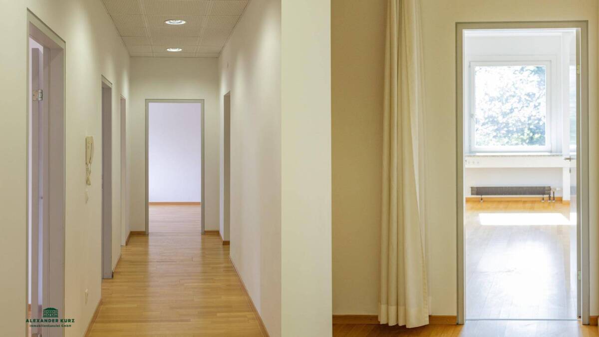 Die Räumlichkeiten mit insgesamt ca. 177,9 m² befinden sich im ersten Obergeschoss und sind aufgrund der großen Fensterflächen sehr hell und freundlich. Der Grundriss erlaubt eine vielfältige Nutzung.Raumaufteilung: Eingangsbereich und Gang 6 Büros Teeküche großzügiger Abstell-/Garderobenbereich 2 WCsAusstattung: • Decke mit integrierter Beleuchtung • öffenbare Fenster mit Außenjalousien • Parkettboden in allen Büros • Fernwärmeheizung Ein Personenaufzug befindet sich im Haus. Pkw-Stellflächen können bei Bedarf nach Verfügbarkeit in der Tiefgarage angemietet werden.Das Objekt ist mit öffentlichen Verkehrsmitteln gut erreichbar.