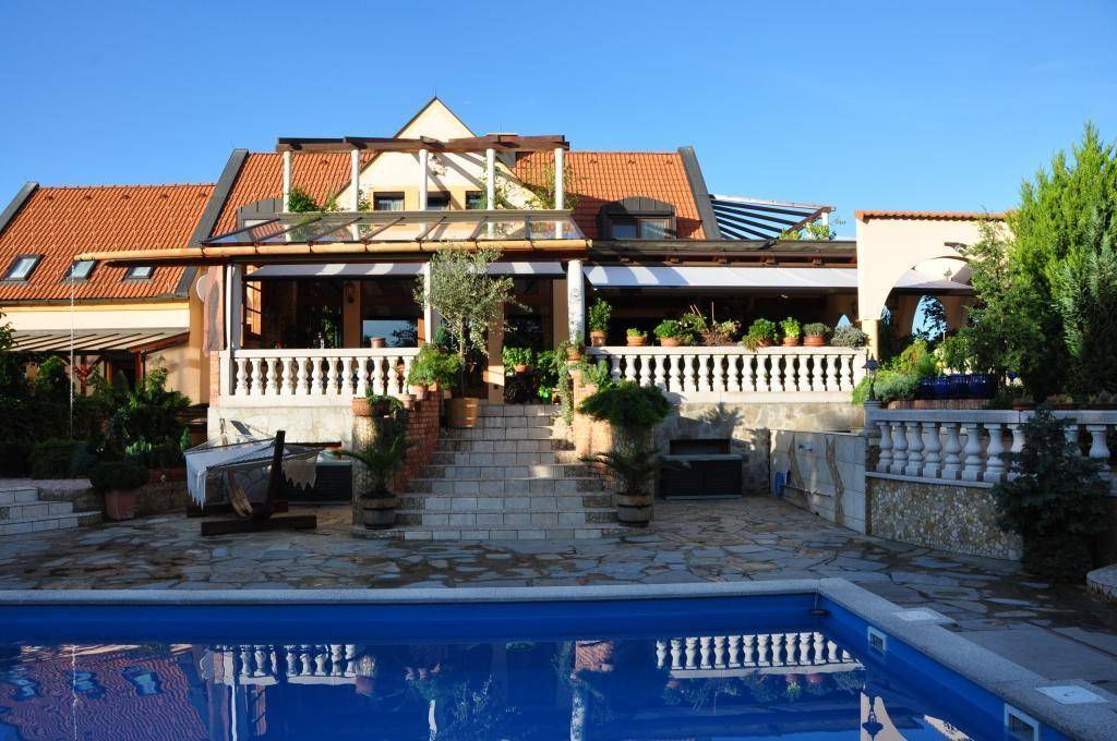 Dieses wunderschöne Anwesen liegt in absoluter Ruhelage in Wimpassing/Leitha, mit einer Grundstücksfläche von ca. 1548 m² und einer Wohnnutzfläche von ca. 379 m². Vom überdachten Eingangsbereich gelangt man in den Vorraum von wo aus alle Zimmer begehbar sind. Eine großräumige Küche mit anschliesender Speisekammer und Kühlhaus, bietet genug Platz für die Zubereitung von Speisen und Getränken. Ein großzügiges Ess- und Wohnzimmer mit großen Esstisch, lädt ein zum Feiern mit Freunden. Ebenfalls befinden sich im Erdgeschoss eine Gardarobe und ein Gäste WC. Von der Küche aus gelangt man auf die ca. 115 m² überdachte,windgeschützte Terrasse mit Blick in den sehr liebevoll gepflegten Garten mit Obstbäumen, kleinem Wasserfall, einen traumhaften Poolbereich und ein sehr schönes Palmenhaus. Vom Dielenbereich aus gelangt man über eine offene Treppe in den Wohnkeller mit einen gemütlichen Partyraum mit Kachelofen, eine großzügige Wellnessoase mit Whirlpool, Sauna, Dusche und WC. Ein Gästezimmer und ein überdachter Außenbereich ist ebefalls vorhanden. Ein uriger Weinkeller bietet genug Raum für die Lagerung edler Weine. Ein Technikraum für die Poolanlage, ein Heizraum für ein Gasbrennwertgerät, ein Hobbyraum, Werkstatt und Lagerraum befinden sich auch in den 159 m² großen Keller. Über die offene Treppe im Dielenbereich kommt man in das wunderschöne Obergeschoss, mit 3 Schlafzimmer und Zugang zu einer Terrasse mit Blick in den Garten. Ein Schlafzimmer mit Balkon, ein Badezimmer mit Wanne und Dusche, ein separates WC, ein großzügiger Schrankraum, zwei weitere Schlafzimmer und ein Büro mit ca. 40 m² befinden sich ebenfalls im Obergeschoss. Das Objekt ist mit einer Fußbodenheizung und Klimaanlage ausgestattet. Eine Garage bietet genug Platz für 2 Autos. Abstellplätze vor der Garage sind ebenfalls vorhanden. Ein Energieausweis ist in Arbeit. Wimpassing/Leitha hat eine sehr gute Infrastruktur und durch die gute Verkehrslage gelangt man sehr rasch nach Wien- und Eisenstadt. Kaufpreis: € 990.000.- Maklerprovision: 3% zzgl. 20% Mwst. Ansprechpartner: Artner Karl Tel: 0676/318 87 57