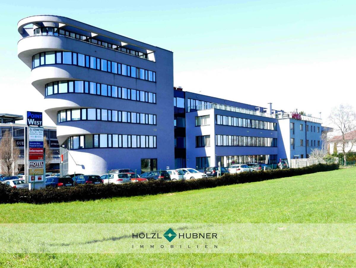 Das repräsentative Büro- und Geschäftshaus verfügt aufgrund der besonderen Architektur über einen hohen Wiedererkennungswert. Es befindet sich in ausgezeichneter Frequenzlage nahe des Flughafens sowie der Autobahn und kann zusätzlich öffentlich optimal erreicht werden. Die Büroräume sind im 2. Obergeschoß situiert, verfügen über unterschiedliche Größen und zusätzlich die Möglichkeit, Archivräume unter zu bringen. Durchgehende Fensterbänder machen die Räume hell und lichtdurchflutet.