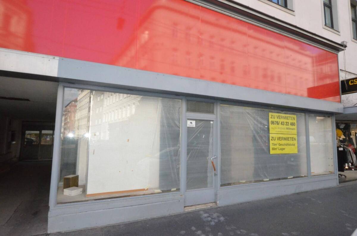 Geschäftslokal in Frequenzlage mit großer Auslage in der WallensteinstraßeDas betreffende Objekt steht ab sofort zur Verfügung.Beschreibung:direkt an der Straße, ( Frequenzlage, Straßenbahn, Autos,...)große Auslage70m² ebenerdig80m² Lager (einen Stock darüber, nicht die volle Höhe, ohne Lift)Heizung: GasetagenheizungWC direkt neben dem Lokal, Einleitung wäre aber möglichUmgebung / Anbindung: direkt an der Straße, davor Straßenbahn, links und rechts davon sind lauter GeschäfteParken: Kurzparkzone vor dem LokalZUSTAND: Die Vermieter sind bereit noch Investitionen in Absprache mit einem Mieter zu tätigen.Vertragsdauer: nach Vereinbarung mit den VermieternFür weitere Fragen erreichen Sie Hr. Mag.(FH) Andreas Willmannbitte senden sie eine ANFRAGE mit ihren Daten ( Name, Tel, Email) sie erhalten nähere Unterlagen und Eckdaten per Email 0676 43 22 469Nebenkosten:Kaution: 6 BruttomonatsmietenProvision: 3 BruttomonatsmietenFinanzamt: je nach Vertragslänge (986,40 Euro bei einem 5-Jahresvertrag)Infrastruktur / EntfernungenGesundheit Arzt <500m Apotheke <500m Krankenhaus <1.500m Klinik <1.500m Kinder & Schulen Schule <500m Kindergarten <500m Universität <1.500m Höhere Schule <1.000m Nahversorgung Supermarkt <500m Bäckerei <500m Einkaufszentrum <2.000m Sonstige Bank <500m Geldautomat <500m Post <500m Polizei <500m Verkehr Bus <500m Straßenbahn <500m U-Bahn <1.000m Bahnhof <1.000m Autobahnanschluss <1.500m Angaben Entfernung Luftlinie / Quelle: OpenStreetMap