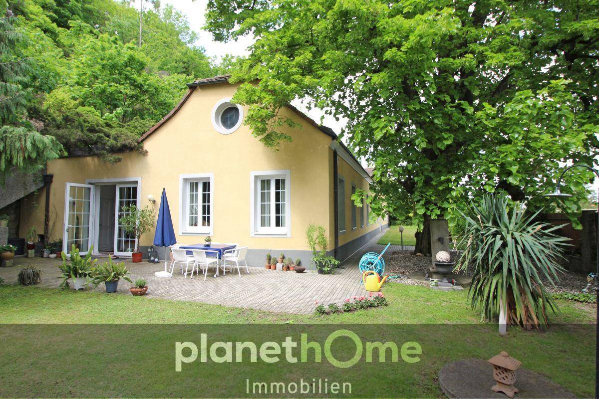Ein "Schatz" an der Donau! Zum Verkauf gelangt ein bestens angebundenes luxuriöses Anwesen mit ca. 10 Minuten Fahrzeit ins Zentrum von Klosterneuburg. Die herrliche Liegenschaft wurde in Teilen im Jahre 1819 erbaut und wurde bis zum Jahre 1981 immer wieder um- und ausgebaut und präsentiert sich in einem hervorragenden Zustand. Auf ca. 180 m² Wohnfläche, mit angenehm großen Wohnzimmern und einer grundsätzlich tollen Raumhöhe von ca. 2,95 m steht in der Hauptwohnung folgendes Raumangebot zur Verfügung: Ein Eingangsbereich/Vorraum von welchem auch ein toller Weinkeller erschlossen wird, ein separates WC, das Wohnzimmer 1 (ca. 41,05 m²), das Esszimmer, das Wohnzimmer 2 + Büro (ca. 36,33 m²), der Gangbereich, die Küche mit Lichtkuppel, ein Badezimmer mit Lichtkuppel und zweitem WC, das Schlafzimmer und zwei Abstellräume. Auf den beiden Grundstücken (weil zwei separate Einlagenzahlen) stehen ca. 6.993 m² zur Verfügung, welche sich laut Flächenwidmungsplan auf einen Waldanteil von ca. 4.808 m², einer als Bauland gewidmeten Fläche (welche momentan ebenfalls bewaldet ist) von ca. 927 m² und weiteren ca. 1.258 m² Bauland aufteilen. Der Flächenwidmungsplan erlaubt eine 25%ige Ausnutzung des Grundstücks bei offener Bauweise in den Bauklassen I und II. Rund um das Hauptgebäude erstreckt sich nach Südosten bzw. Nordosten (Vorgarten) eine wunderbar gepflegte Grünfläche mit Altbaumbestand und einem Nebengebäude mit einer Werkstatt, einer Sauna und einem Holzschuppen. In diesem Zusammenhang darf darauf hingewiesen werden, dass der auf der Gemeinde aufliegende Planstand für das Nebengebäude andere Widmungen aufweist. Jedes der beiden angesprochenen Grundstücke besitzt einen eigenen Zugang. Auf dem kleineren der beiden wurde ein komfortables Carport für vier PKWs mit elektronischen Einfahrtstor realisiert. Im Gebäude steht noch eine weitere, unsanierte Wohnung mit ca. 80 m² zur Verfügung, welche über einen eigenen Eingangsbereich verfügt und von der Hauptwohnung baulich getrennt ist. Als Heizsystem kommt eine Gastherme mit Fußbodenheizung zur Anwendung. Der Energieausweis vom 08.04.2019 weist folgende Kennzahlen aus: HWB = 170 kWh/m²a und fGEE = 2,62 Laut Eigentümerinformationen kann mit folgenden monatlichen Bruttokosten gerechnet werden: Gemeindeabgaben komplett€ 83,58 Stromkosten (lt. Jahresabr. 2018)€ 40,17 Gaskosten€ 27,25 Hinzu kommt ca. € 400,-- für das Kachelofenholz im Winter. Jetzt ein ausführliches Exposé anfordern: https://www.planethome.at/immobilie-suchen/immobilie-suchen/PHIAPHIA9391