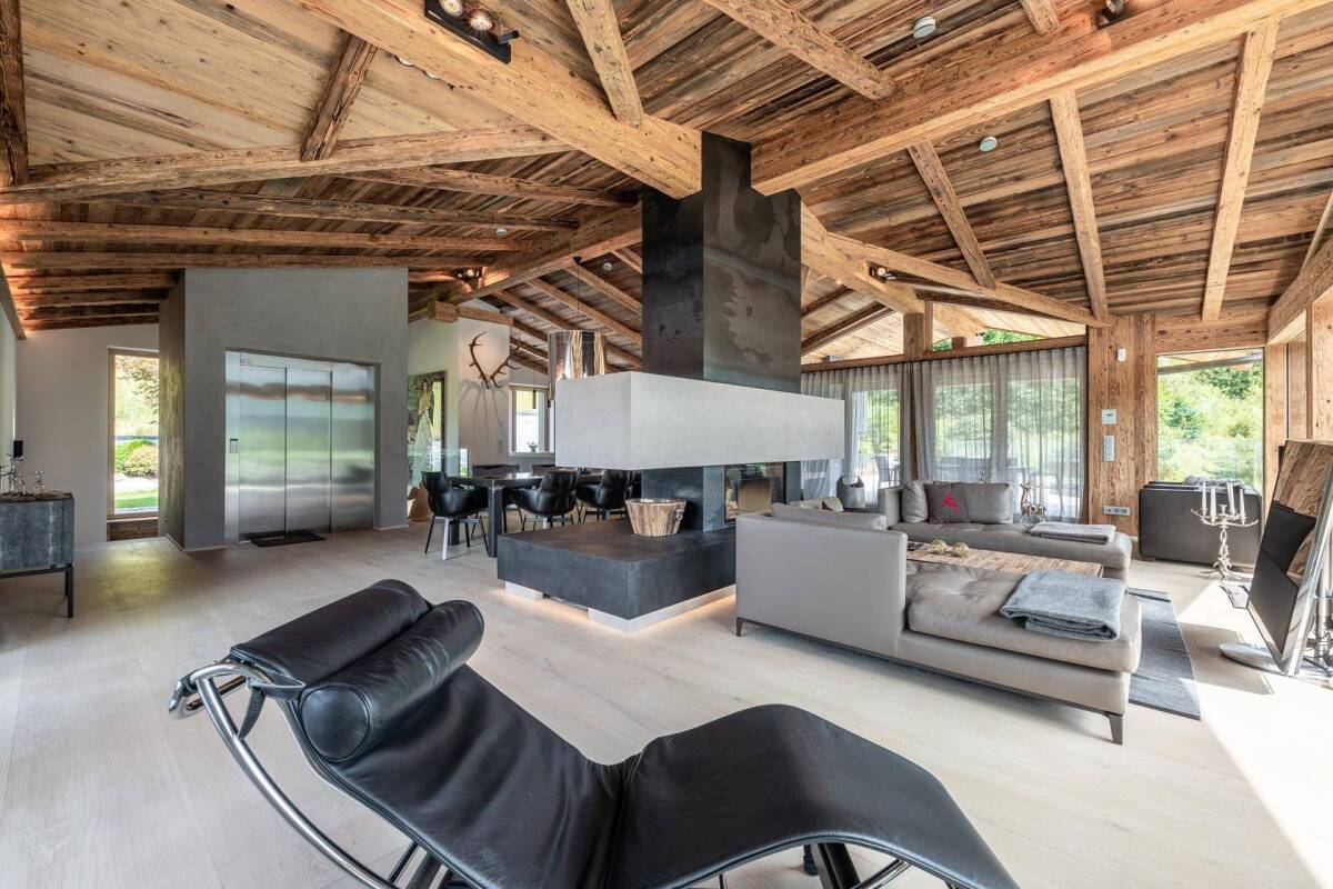Bei dem hier angebotenen Designhaus, welches sich über insgesamt 604 m² Gesamtwohnfläche und über vier Ebenen erstreckt, wurde extrem viel Wert auf Funktionalität, allerhöchste Qualität in sämtlichen Bereichen sowie viel Liebe zum Detail gelegt, die wahrlich nur schwer zu finden ist. Sowohl der Baukörper als auch die Innenausstattung werden Sie ins Staunen bringen und lassen keinerlei Wünsche offen. Neben der sehr edlen Einrichtung, dem äußerst gelungenen Raumkonzept und der hervorragenden Materialwahl glänzt das Anwesen mit unzähligen technischen Highlights wie zum Beispiel einem BUS-System oder mit der ansprechenden Außenansicht mit edler Steinfassade in Kombination mit Altholz. Der Haupt-Part der Villa befindet sich im Obergeschoss, wo der Masterbereich mit einer imposanten Wellnessoase und einem riesigen Ankleidezimmer direkt an das Schlafzimmer angrenzen. Im Wellnessbereich fehlt es wahrlich an nichts, wenn es um die Entspannung und Erholung geht; neben einer Sauna verfügt dieser über ein Dampfbad, ein Whirlbecken und ein Wasserbett, welches zum Relaxen einlädt sowie der dazugehörigen Dusche und ein WC. Nebenan befinden sich zwei weitere Schlafzimmer, jedes mit Bad en suite und im Foyer ein zusätzliches Gäste-WC. Im Dachgeschoss liegt der lichtdurchflutete Wohn-Essbereich mit einer Profiküche von Bulthaup. Der offene Kamin ist als Raumtrenner clever in Szene gesetzt und sorgt für kuschelige Gemütlichkeit und Romantik. Von dort aus erreichen Sie auch die wunderschöne Sonnenterrasse, die sehr viel Privatsphäre gewährt. Der dort angelegte Pool lädt an heißen Sommertagen zu einem Sprung ins kühle Nass ein und ein Außen-Kamin mit Grillfunktion, lässt Sie auch lauschige Abendstunden im Freien genießen. Dieses absolute Luxus-Objekt verfügt über eine Gäste-Suite im Erdgeschoss sowie eine weitere Gäste-Maisonette, jeweils mit separaten Eingangsbereichen. Diese beiden Apartments sind mit denselben hochwertigen Ausstattungs-Highlights versehen und verfügen über wunderschön gestaltete Foyers, edle Möblierungen und ebenso über hochwertige Bulthaup-Küchen. Abgerundet wird die luxuriöse Liegenschaft durch die raumhohen Fenster, die beeindruckenden Außenbereiche mit mehreren Terrassen und Grünflächen sowie durch die Großzügigkeit aller Wohnbereiche, die Ihnen absolute Wohnqualität versprechen. Ihre Fahrzeuge finden in der beachtlichen Tiefgarage Platz, von wo aus Sie direkt mit einem Personenaufzug oder über das elegante Treppenhaus in die einzelnen Wohnbereiche gelangen. Die Wärmeversorgung des Anwesens erfolgt über die Fußbodenheizung in den gesamten Wohnetagen mit umweltfreundlicher Erdwärme und Gas.