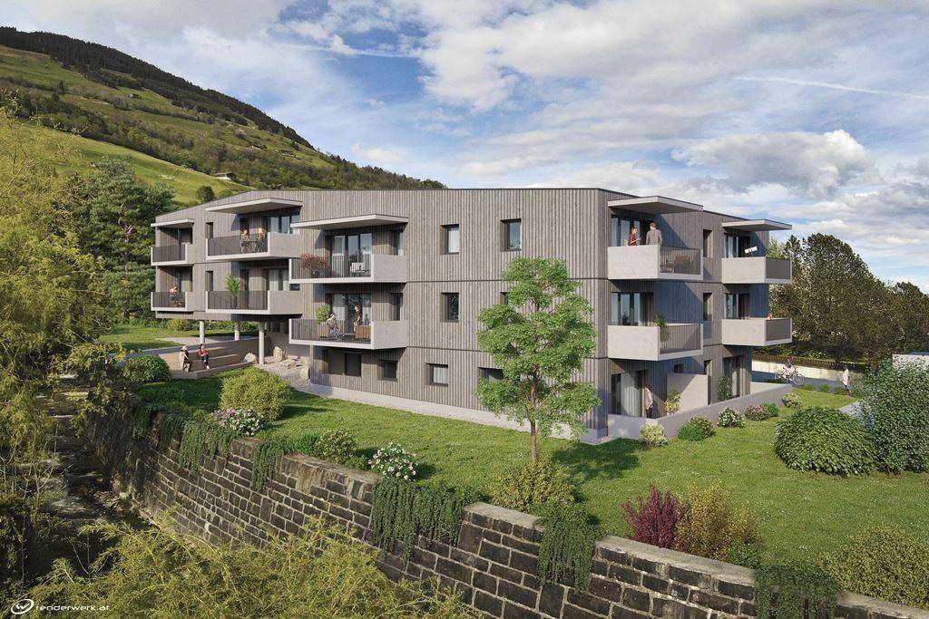"Sunnseitiger Wohn(t)raum in Mittersill" Zentrale Lage am Fuße des Schlosses Mittersill, auf der Sonnenseite der Oberpinzgauer Stadt Es entstehen insgesamt 15 Wohneinheiten (2- Raum und 3-Raum Wohnungen) Ein komfortables Wohnen wird durch Barrierefreiheit in allen Wohneinheiten, den Personenaufzug von der obersten Etage bis in die Tiefgarage, zur Wohnung gehörendes Kellerabteil, Allgemeinräume sowie einen schön angelegten Kinderspielplatz gewährleistet. Moderne ökologische Bauweise und die Verarbeitung qualitativ hochwertiger Materialien bei der Innenausstattung sind bei uns seit über 60 Jahren ein Garant für ein zukunftsträchtiges und langlebiges Eigenheim. Einen großen Pluspunkt für die Finanzierung mit möglicher Wohnbauförderung stellen auch die 19 Energiepunkte dar. HWB 30, fGEE 0,56 Allgemeine Daten Planung:Wohnbau-Genossenschaft Bergland 5700 Zell am See Baubeginn:Sommer/Herbst 2019 Fertigstellung:Winter 2020 Einheiten: 15 Wohneinheiten zwischen 48,62m² und 83,30m² Heizung: Biomasse - Pelletsheizung; Fußbodenheizung Sonstiges:Lift, Terrasse oder Balkon oder Loggia, Tiefgarage, Kellerabteil, Allgemeinräume Top 7 im 1.OG | Geräumige 3-Zimmerwohnung Kochen/Essen/Wohnen: 29,15m² Abstellraum: 2,48m² Vorraum: 8,45m² Schlafzimmer: 13,85m² Kinderzimmer: 10,40m² WC: 1,68m² Bad: 6,42m² Gesamt: 72,43m² Loggia: 5,72m² Kellerabteil: 5,11m2 Kaufpreis TG-Stellplatz je nach Größe € 16.300,00 bis € 19.500,00 Wir freuen uns auf Ihre Terminvereinbarung für ein Informations/Verkaufsgespräch- Regine Schreder (06542)5460 32
