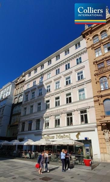BESCHREIBUNG In prestigeträchtiger Lage, am Graben, im Herzen Wiens wird diese Bürofläche zur Vermietung angeboten. Das klassizistische Gebäude, genau am Ende der Sichtachse des Grabens, wurde in den Jahren 1798/99 errichtet. Ab 1999 wurde es einem Umbau und ab 2001 einem Dachausbau unterzogen, in dessen Zuge auch die Haustechnik sowie die Büroausstattung erneuert wurde. Das Haus beherbergt in den unteren Geschoßen derzeit den Luxus-Feinkost-Anbieter „Meinl Am Graben“ und darüber Büroräume. Als Vertreter eines typischen Altbaus weist das gesamte Objekt großzügige Raumhöhen sowie eine tolle Kombination aus modern alt auf. Besonders hervorzuheben ist der einzigartige Blick durch die großzügigen öffenbaren Fenster, direkt auf den Graben in Richtung der Pestsäule. Die Lage in Mitten der berühmtesten Straße der Altstadt, bietet einerseits einen repräsentativen Standort andererseits gewährleistet dieser einen hervorragende Infrastruktur. Nur wenige Gehminuten entfernt befindet sich der Stephansdom, die Hofburg aber auch einer der traditionellen Einkaufsstraßen Wiens mit der Kärntner Straße. VERFÜGBARKEIT nach Vereinbarung VERFÜGBARE MIETFLÄCHEN Top 104 400 m² € 17.900,00 nach Vereinbarung Betriebskosten, Strom und tägliche Reinigung sind bereits in der Gesamtmiete inkludiert. AUSSTATTUNG Eigene Fläche für 30 Arbeitsplätze Küche komplett serviciert Büros komplett ausgestattet BK, Strom & tägliche Reinigung inkl. Serverraum Klimatisiert Internet & Telefonanschluss inkl. Eigner Meetingraum Empfangsbereich inkl. 200m² Allgemeine Fläche TECHNISCHE DETAILS Altbau Energiekennwerte: Energieausweis wird nachgereicht LAGE UND VERKEHRSANBINDUNG öffentlicher Verkehr: U-Bahn:U1, U3 Schnellbahn:- Straßenbahn:- Bus:1A, 2A, 3A Individualverkehr: Franz-Josephs-Kai, Gürtel INFRASTRUKTUR Durch die Lage am Graben ist eine Vielzahl von Geschäften, Restaurants und Cafés in der unmittelbaren Umgebung innerhalb weniger Gehminuten erreichbar. Im Erdgeschoß des Hauses befindet sich außerdem das Café Meinl. KAUTION 3-6 Bruttomonatsmieten PROVISION Im Falle eines Vertragsabschlusses beträgt unser Honorar lt. Maklerverordnung für Immobilienmakler, BGBI.262 und 297/1996, 3 Bruttomonatsmieten zzgl. 20 % Ust. Weiters möchten wir auf unsere allgemeinen Geschäftsbedingungen und den ausschließlichen Gerichtsstand Wien, Innere Stadt verweisen. Alle Preisangaben verstehen sich pro Monat, zzgl. der gesetzlichen Ust. und Betriebskosten. Energieausweis wird nachgereicht