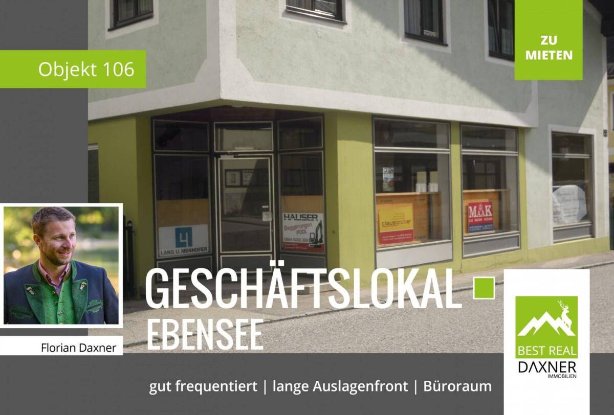 In einer gut frequentierten Lage, direkt an der Ebenseer Hauptstraße befindet sich dieses Geschäftslokal mit einem Gesamtausmaß von ca. 100m2. Das Geschäftslokal besteht aus einer ca. 80m2 großen Verkaufsfläche, einem Büro im Ausmaß von rund 13m2 sowie einem WC. Die vielen Nutzungsmöglichkeiten, die ca. 10m lange Auslagenfront welche Richtung Hauptstraße ausgerichtet ist, sowie die leistbare Miete machen dieses Geschäftslokal interessant!