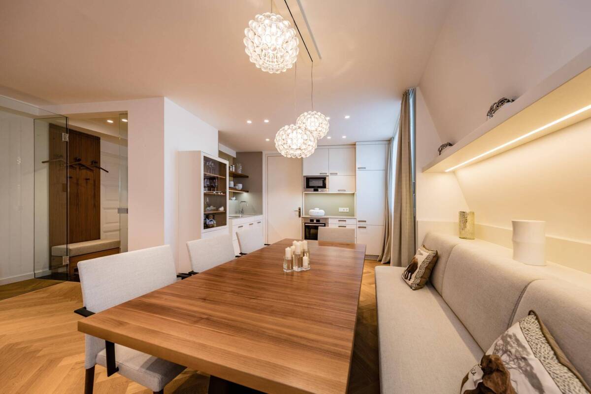 WOHNEN AN WIENS ERSTER ADRESSE Das repräsentative, denkmalgeschützte Gebäude im Herzen der Wiener Innenstadt beherbergt neben vierzehn exklusiven, neu errichteten Wohnungen in den obersten zwei Geschoßen luxuriöse Shops zahlreicher internationaler Marken, einzigartige Büroflächen und eine moderne Tiefgarage. Historisches Ambiente verbunden mit modernster Ausstattung und Technik, die Verwendung von edlen Materialien und das internationale Flair machen diese Residenzen zu echten Raritäten in einer der lebenswertesten Städte der Welt. RAUMAUFTEILUNG TOP 10 Vom Entrée mit Technikraum gelangt man in den Wohnsalon mit Küche und offenem Kamin, der Richtung Steindlgasse ausgerichtet ist. Über einen Zwischenflur sind das Schlafzimmer sowie Bad und WC begehbar. Vom Wohnsalon führt derzeit eine doppelte Verbindungstür in die ebenfalls zum Verkauf stehende Nachbarwohnung mit ca. 132 m² mit drei Schlafzimmern und zwei Bädern (Kaufpreis EUR 2,980.000,--). Die eleganten Bäder sind mit großformatigen Natursteinbelägen ausgestattet, im Wohnbereich ist Eichenparkett im Fischgrätmuster verlegt. Die Wohnung ist komplett möbliert. Die hochwertige technische Ausstattung umfasst unter anderem Deckenkühlung, Fußbodenheizung, Einbauspots, elektrisch bedienbaren, außen liegenden Sonnenschutz, Alarmanlage, Kabel TV, Satellit und CAT6 Verkabelung. Die Raumhöhe beträgt ca. 2,55 m (ausgenommen Bereiche mit abgehängten Decken) HWB: 71