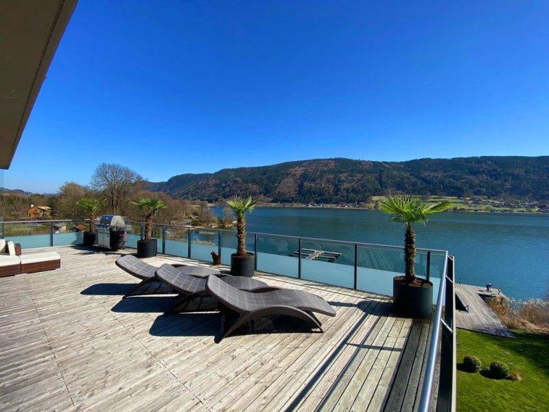 Wunderbare Gelegenheit in Kärnten. Ein ganze besonderes Seepenthouse am Ossiacher See, welches fast alle Wünsche erfüllen wird. Am Fuße der Gerlitze in wunderbarer Sonnenlage. Das großzügige Penthouse mit einer Wohnfläche von ca. 163 m2 und der großen Seeterrasse - 160 m2 rundumlaufend - bietet Großzügigkeit in allen Bereichen. Von den Schlafzimmern, als auch von dem großen Wohnraum und der übergroßen Terrasse haben Sie einen einmaligen See- und Landschaftsblick. Dies ist ein Refgium der Sonderklasse, für besondere Leute. Von Ihrer Seeloge aus kontrollieren Sie fast den ganzen See. Möchten Sie schwimmen, oder mit Ihrem Motorboot fahren, so fahren sie einfach mit dem Lift runter zum Strand und gehen zur Marina..... Wandern, Radfahren uvm. ... Der Schi- und Wanderberg Gerlitze ruft. Eine Wohlfühloase, sowie eine besondere Wertanlage. Lassen Sie sich begeistern. Bei ernstem Interesse rufen Sie uns bitte direkt an, damit wir Ihre Anliegen bevorzugt behandeln können. Als Spezialist für Seeimmobilien seit 1971 werden wir Sie sehr gerne beraten. Danke